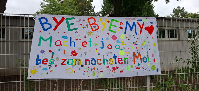 In der letzten Schulwoche konnte man unsere Klassen dabei beobachten, wie sie ihren Klassenraum fleißig für das neue Schuljahr vorbereiteten. Alle Kinder und Erwachsenen nahmen sich auch nochmal viel Zeit dafür, auf das vergangene Schuljahr zurückzublicken und noch einige schöne Momente vor der großen Ferienpause zu sammeln. Einer dieser Momente fand beim letzten Aulasingen des Schuljahres statt. Hier präsentierten die Mäuse und Eichhörnchen ihr emotionales Abschiedslied. Am letzten Schultag mussten wir ihnen dann leider "Auf Wiedersehen!" sagen. Nach der Pause versammelten sich alle Kinder, Mitarbeitende und einige Eltern der GGS Alzeyer Straße, um unsere Viertklässler und Viertklässlerinnen unter verdientem Applaus aus ihrer Grundschulzeit zu entlassen. Alles Gute für die Zukunft, liebe Mäuse und Eichhörnchen!